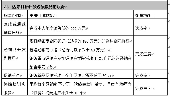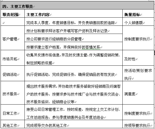 上述案例的結(jié)論是:崗位說明書的實際功能是讓銷售人員明白自己為了達(dá)成目標(biāo)要做什么?公司內(nèi)部有哪些資源可以支持他達(dá)成目標(biāo)?除此兩方面外的其它內(nèi)容,對于崗位操作人員都是無效的。因此,崗位說明書的格式及內(nèi)容,做到簡明有效就好。