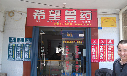 不知不覺一路貼到陳河鎮(zhèn)上,大家加快了進度,沒多久,古鎮(zhèn)主街道兩側的電線桿上就貼滿了回盛的品牌宣傳畫。我們驚喜的發(fā)現(xiàn),鎮(zhèn)上一家希望獸藥店,在店門口醒目的位置還打出了“回盛股份新華星動保連鎖獸藥應城銷量第一”的標語。老板談起銷售業(yè)績一臉歡喜,看得出來回盛旗下的產品在鎮(zhèn)上比較暢銷,市場占有率很高。