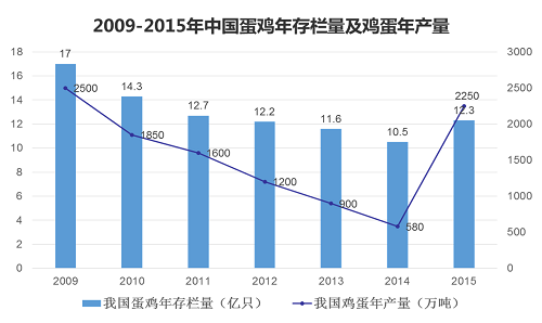 (2009-2015年,中國蛋雞產(chǎn)業(yè)規(guī)模呈現(xiàn)持續(xù)下滑后回升的趨勢)