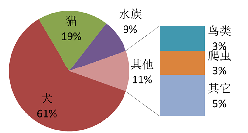 中國養(yǎng)寵種類占比為: