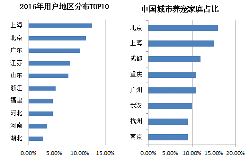 中國養(yǎng)寵用戶主要居住在沿海經(jīng)濟發(fā)達地區(qū)。